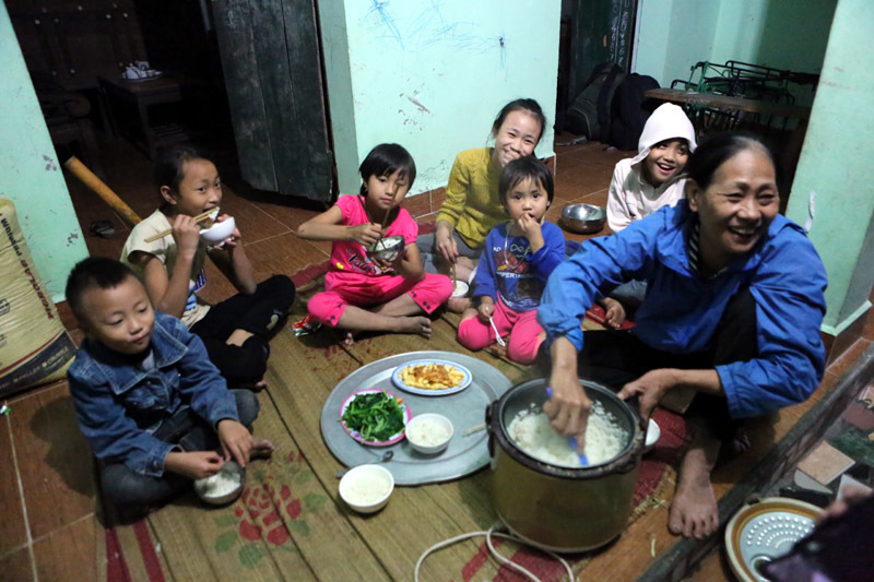 Nguyễn Thị Bống (58 tuổi, mẹ chồng chị Hồng) cho biết: "Tôi muốn ở cùng để đỡ đần con, chăm sóc đàn các cháu, nhưng hoàn cảnh cũng khó khăn. Tôi đi làm buổi đực buổi cái, ông lại đau ốm suốt nên chẳng giúp được bao nhiêu".