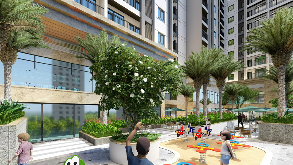 Bên cạnh đó là các tiện ích đẳng cấp được tích hợp ngay dưới sân nhà như: trung tâm thương mại, nhà hàng, ẩm thực, cà phê, phòng Gym - Yoga - Spa hiện đại sang trọng, hồ bơi vô cực, công viên hồ nước bầu trũng, khu tắm nước mặn và nước ngọt, khu vui chơi giải trí trẻ em...