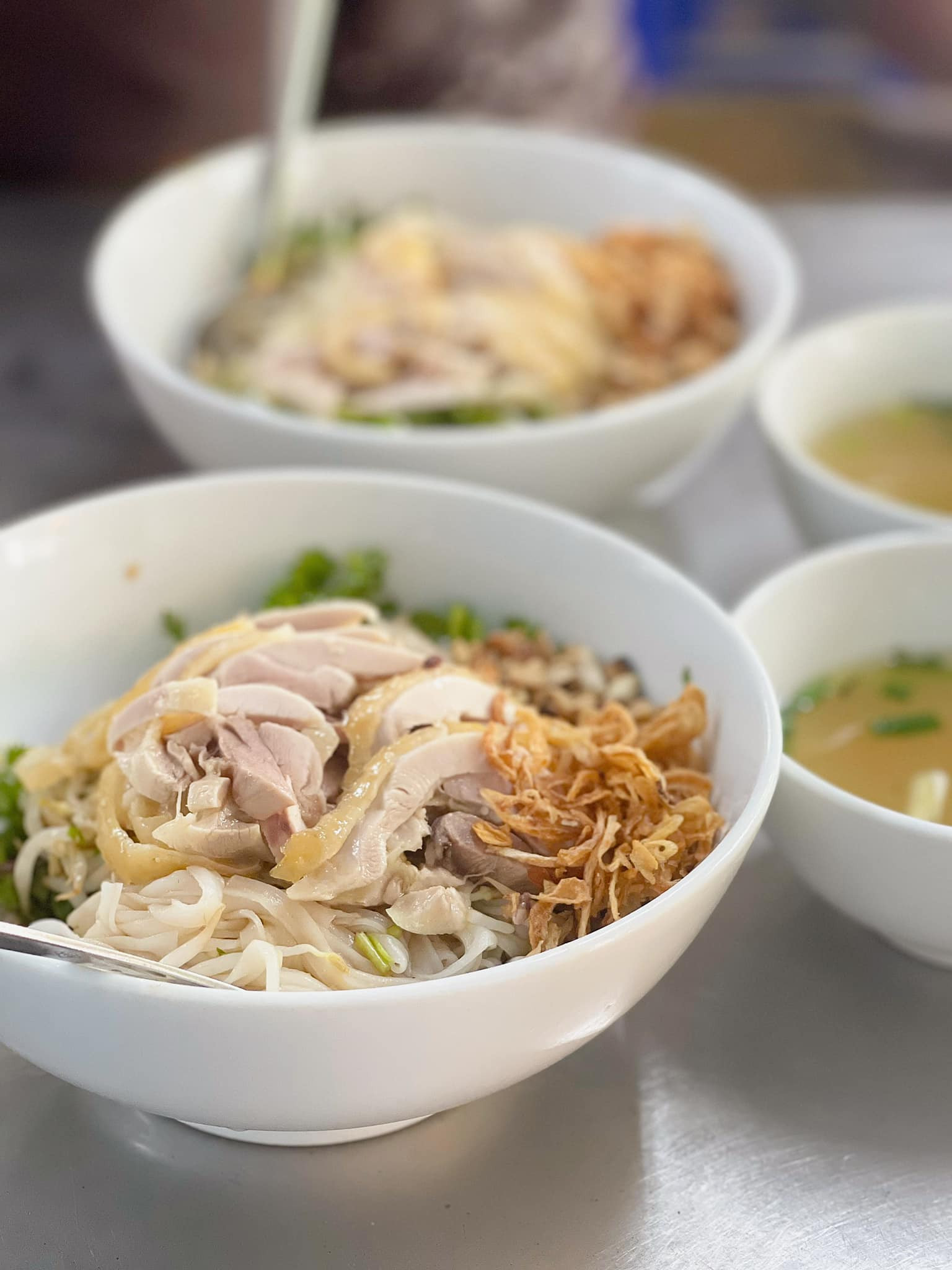 Ngoài phở nước, quán cũng phục vụ phở gà trộn kèm một bát nước dùng nhỏ.