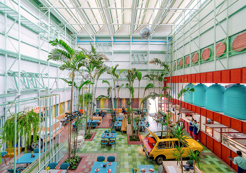 Madero, Guatemala, Guatemala: Từ bên ngoài, Madero trông giống như một khối màu đỏ khổng lồ, không có cửa sổ, nằm bên cạnh một trong những đường cao tốc bận rộn bậc nhất Guatemala. Bên trong, đó là một nhà hàng rực rỡ có không gian rộng mở. Nhóm kiến trúc sư của Taller KEN, có văn phòng ở Guatemala và New York, đã lấp đầy khoảng trống của nhà hàng bằng cây xanh nhiệt đới và những mẫu xe hơi cổ đầy màu sắc tạo ra một ốc đảo sôi động trái ngược với cảm nhận tẻ nhạt bên ngoài. Ảnh: Designboom.