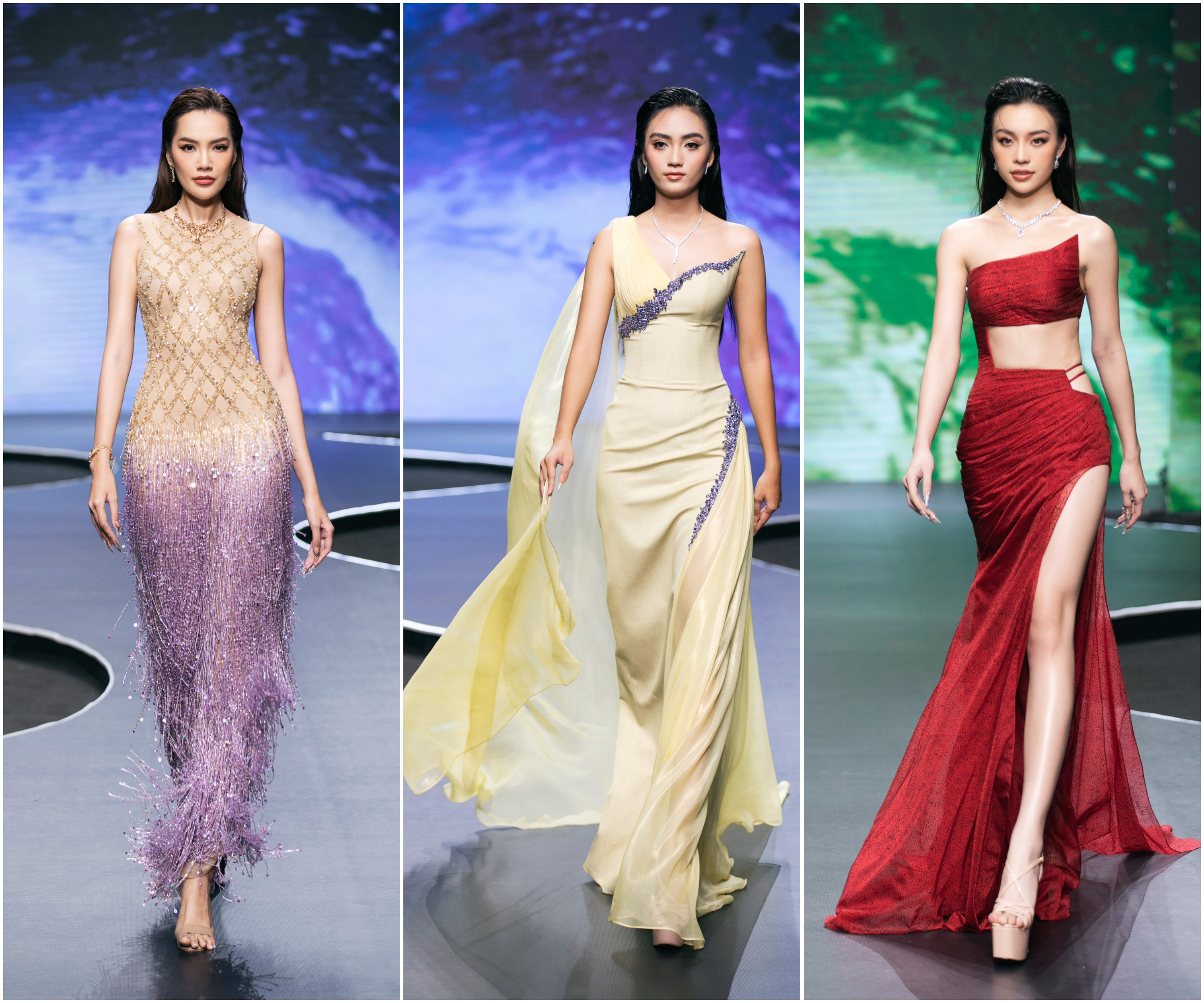 Không kém cạnh, dàn thí sinh Miss Grand Vietnam 2023 giữ vững phong độ và thể hiện tốt về khả năng trình diễn. Những bộ cánh lộng lẫy đã góp phần tôn lên những đường cong nóng bỏng cùng đôi chân dài của dàn người đẹp Miss Grand Vietnam 2023.