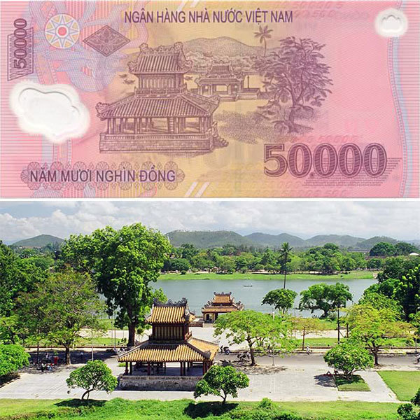 Đáp án: Tờ tiền polymer mệnh giá 500.000 đồng in hình phong cảnh ngôi nhà đơn sơ của Chủ tịch Hồ Chí Minh ở làng Sen, tên chữ là Kim Liên (bông sen vàng), nay thuộc huyện Nam Đàn, tỉnh Nghệ An. Khu di tích Kim Liên hiện là nơi lưu giữ tài liệu, hiện vật... gắn với quê hương, gia đình và thời niên thiếu của Chủ tịch Hồ Chí Minh.