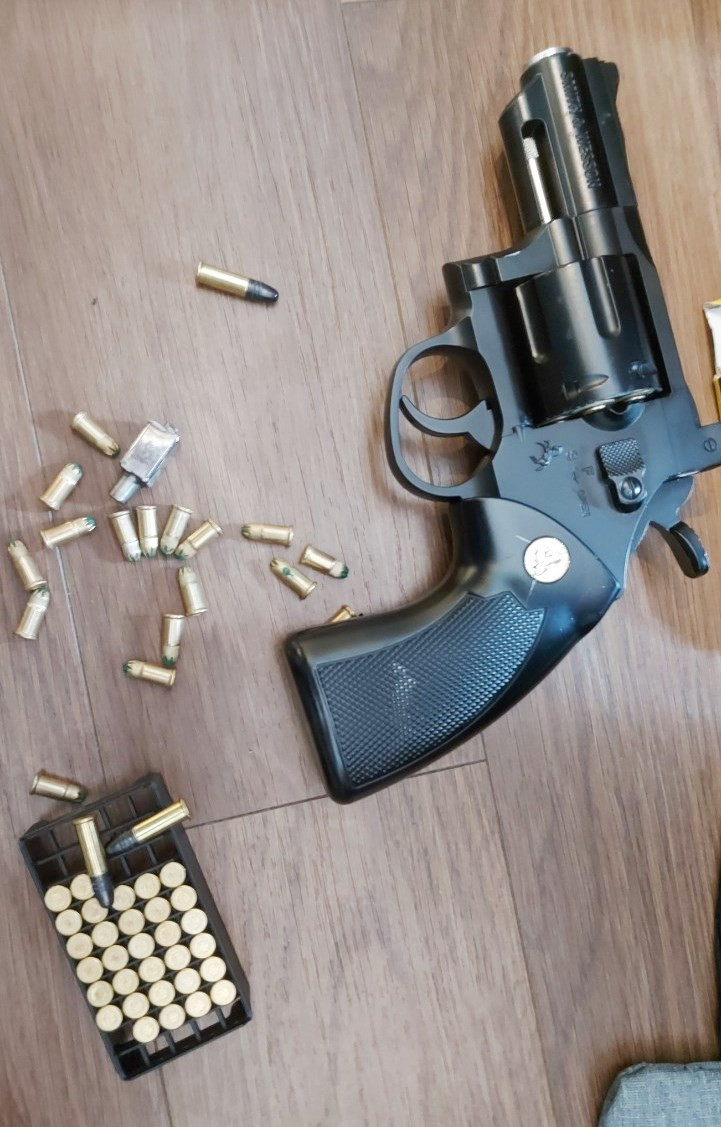 Tang vật thu giữ gồm 1 súng ngắn ổ xoay chứa 4 viên đạn và một hộp giấy chứa 51 viên đạn các loại.