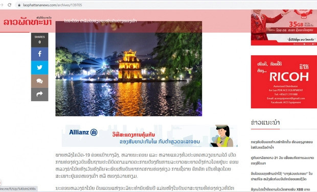 Trang tin của Lào còn ca ngợi Việt Nam là một trong những quốc gia tiêu biểu của Đông Nam Á mở cửa đón du khách nước ngoài trở lại, nhờ đó ngành du lịch của Việt Nam đã phục hồi mạnh mẽ sau hơn 2 năm dịch bệnh. Minh chứng cho điều này, Laophattananews đã nói về bầu không khí nhộp nhịp cả ngày lẫn đêm, hoạt động giao thương sôi động của Hà Nội – thủ đô ngàn năm văn hiến của Việt Nam, đặc biệt là các tuyến phố sầm uất xung quanh khu vực hồ Hoàn Kiếm.