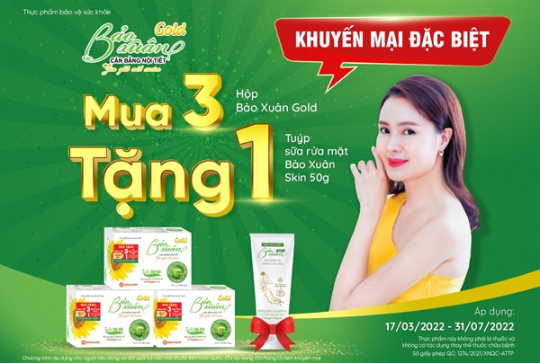 Nhằm tri tri ân những khách hàng đã tin dùng TPBVSK Bảo Xuân trong suốt 12 năm qua, từ ngày 17/03- 31/07/2022, Bảo Xuân triển khai chương trình khuyến mại đặc biệt: Khách hàng mua 3 hộp TPBVSK Bảo Xuân Gold có dán tem quà tặng sẽ được tặng ngay 1 tuýp Sữa rửa mặt Bảo Xuân Skin 50g.
