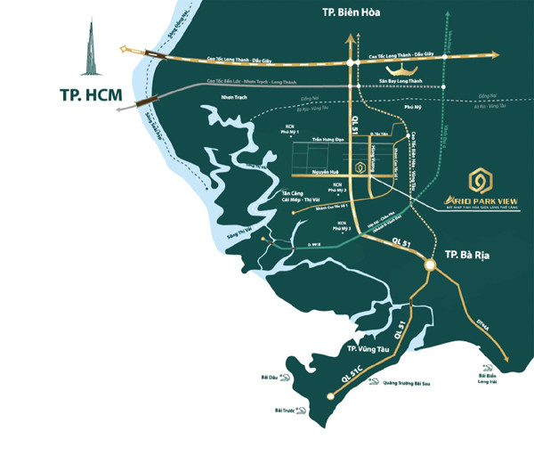 Từ Ario Park View, cư dân di chuyển thuận tiện tới Quốc lộ 51 hướng về TP. Vũng Tàu và TP.HCM. Bao quanh dự án còn là trung tâm hành chính thị xã Phú Mỹ, UBND phường Phú Mỹ, bệnh viện quốc tế, trung tâm thương mại KNG Mall, siêu thị Co.opMart, sân golf Phú Mỹ, resort, khu nhà ở Ba Son...