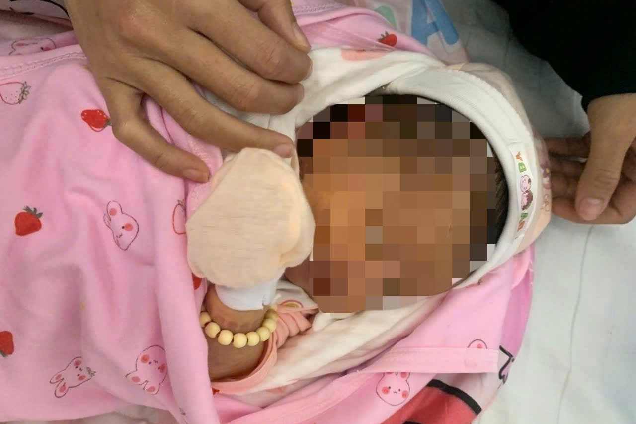 Kiểm tra bên trong, chị Dung phát hiện một bé gái sơ sinh cùng quần áo, sữa và một tờ giấy viết tay.