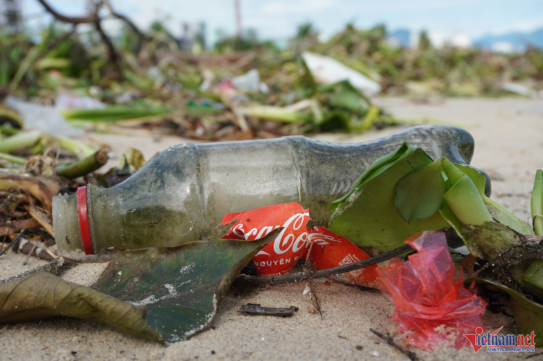 Hình ảnh bãi biển Đà Nẵng đầy rác sau bão số 4: