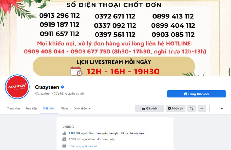 Fanpage và kênh tiktok cập nhật mẫu mới thường xuyên với hơn 1,5 triệu người yêu thích và follow để các phái đẹp dễ dàng tiếp cận mua sắm online một cách dễ dàng.