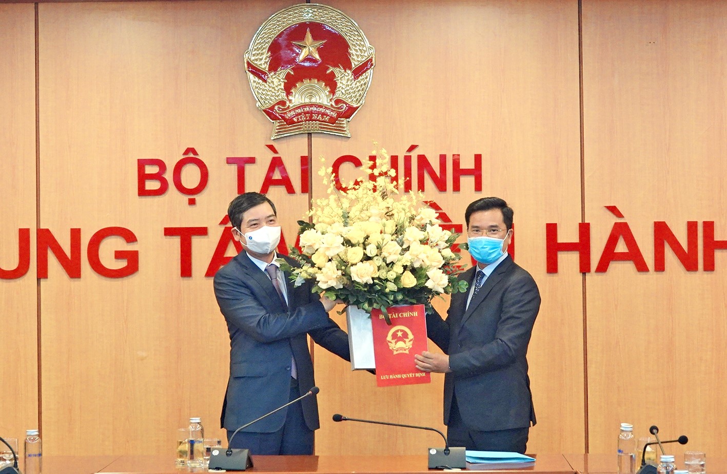 Thứ trưởng Tạ Anh Tuấn trao quyết định bổ nhiệm 2 tân Phó Tổng giám đốc Kho bạc Nhà nước. |