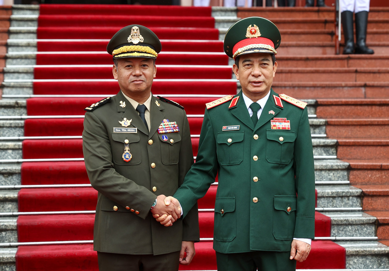 Đại tướng Phan Văn Giang trong các cuộc đón tiếp Bộ trưởng Quốc phòng Campuchia Tea Seiha và Bộ trưởng Quốc phòng Lào Chansamone Chanyalath.