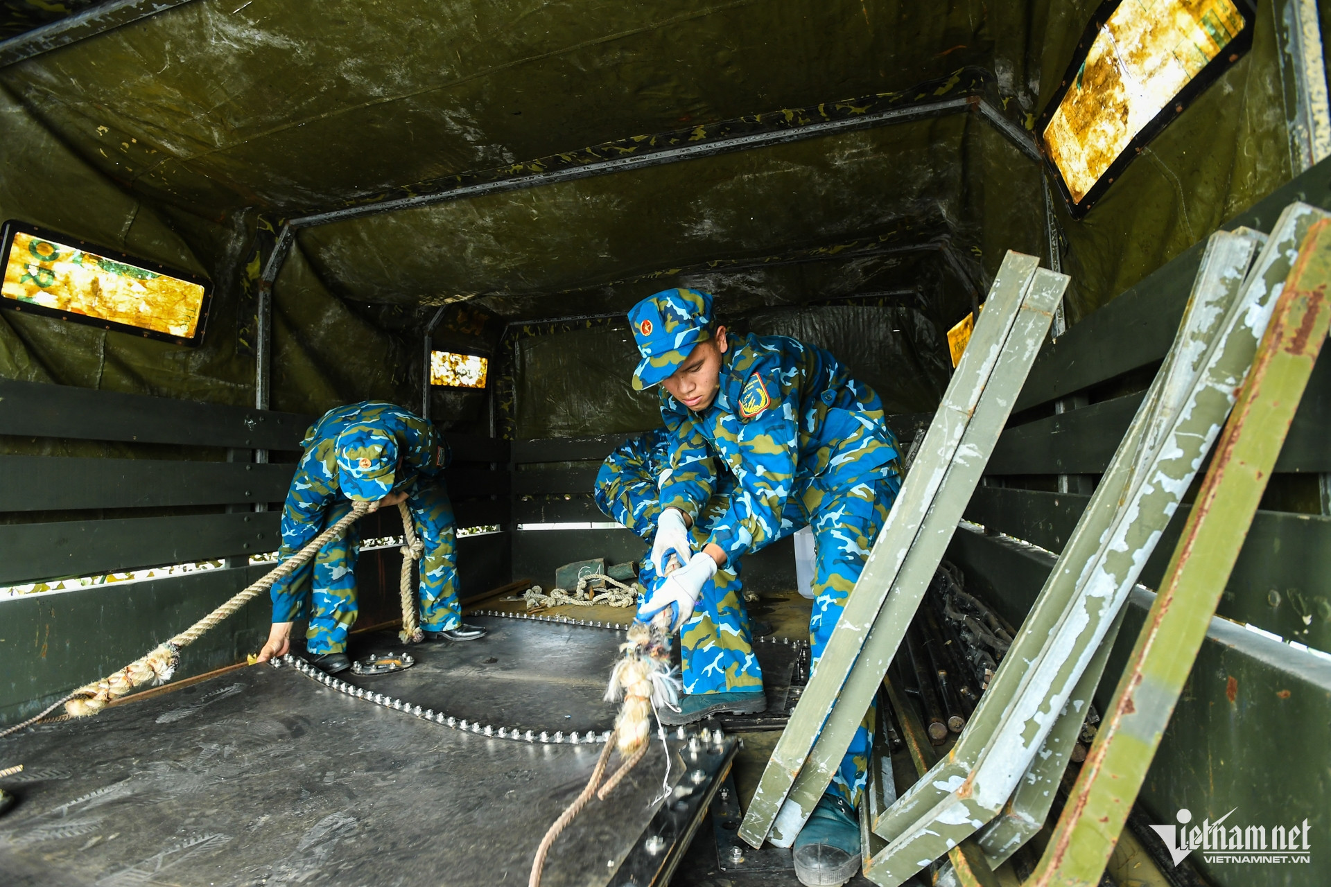 Các chiến sĩ thuộc Quân chủng Phòng không - Không quân thực hiện tháo dỡ khí tài, chuẩn bị vận chuyển về đơn vị sau khi Triển lãm "80 năm Hành trình Độc lập - Tự do - Hạnh phúc" kết thúc.