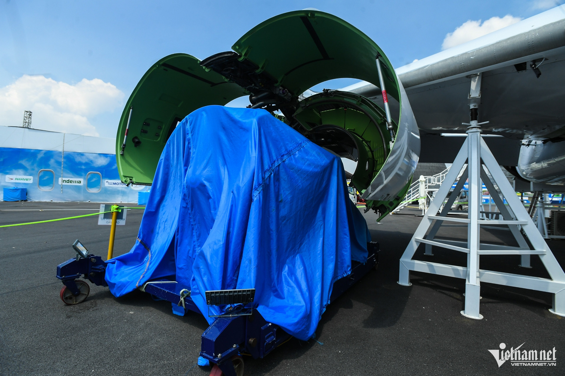 Động cơ Rolls-Royce Trent XWB khổng lồ của máy bay Airbus A350 đã được Vietnam Airlines mang tới triển lãm những ngày qua cũng trong quá trình hoàn tất chuẩn bị để vận chuyển.
