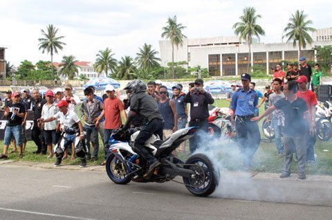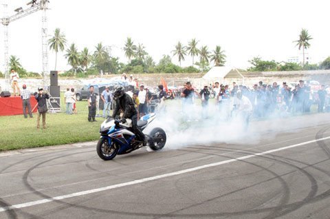 Đem đến cho khán giả những pha diễn thót tim, tay lái Lê Hoàng cùng chiếc Nissan 350z đã trình diễn màn đốt lốp, drift chạy ngang xe trên sân vận động và quay vòng tròn với tốc độ rất cao. Trong khi đó, tay đua Ngô Nguyễn Anh Tuấn trên chiếc Suzuki GSX với những động tác điều khiển điêu luyện cũng thể hiện màn đốt lốp và lăng xe đầy ấn tượng.