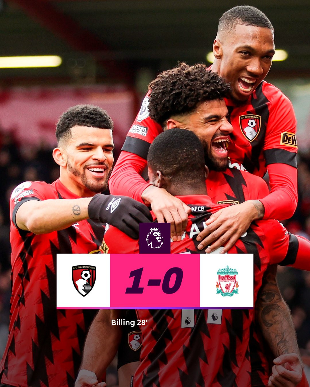 Bàn thắng (1-0, Billing): Ouattara bứt phá tốc độ bên cánh phải loại bỏ 2 hậu vệ đội khách rồi căng ngang dọn cỗ cho Billing đệm cận thành tung lưới Liverpool.