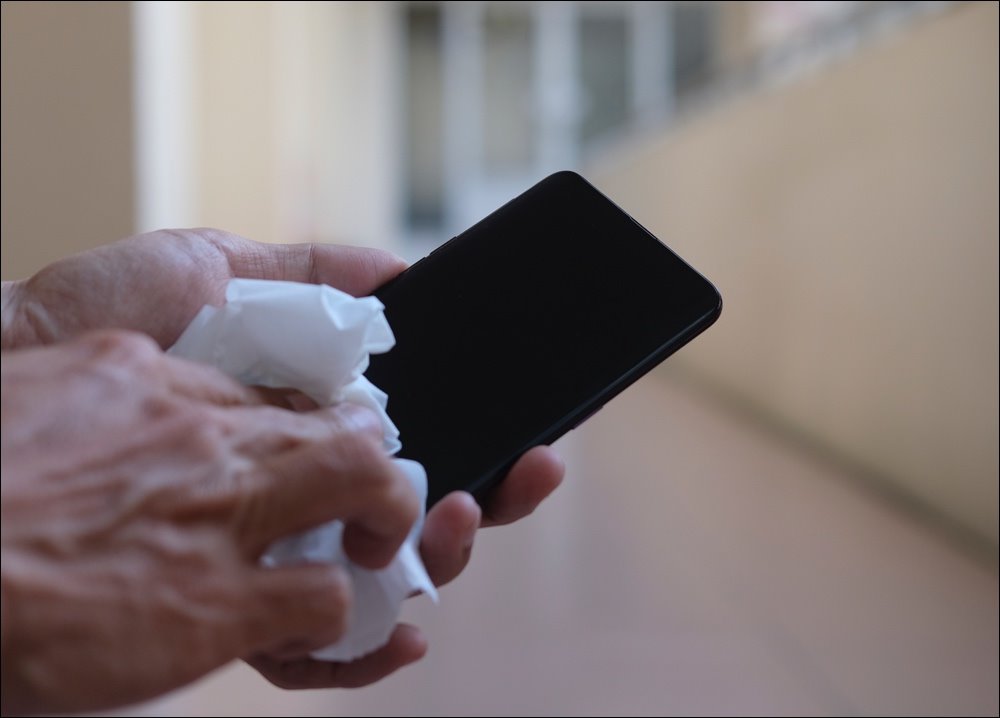 Cần tránh nước thấm vào trong điện thoại qua khe loa và các cổng giao tiếp bằng cách vắt khăn thật khô trước khi lau.