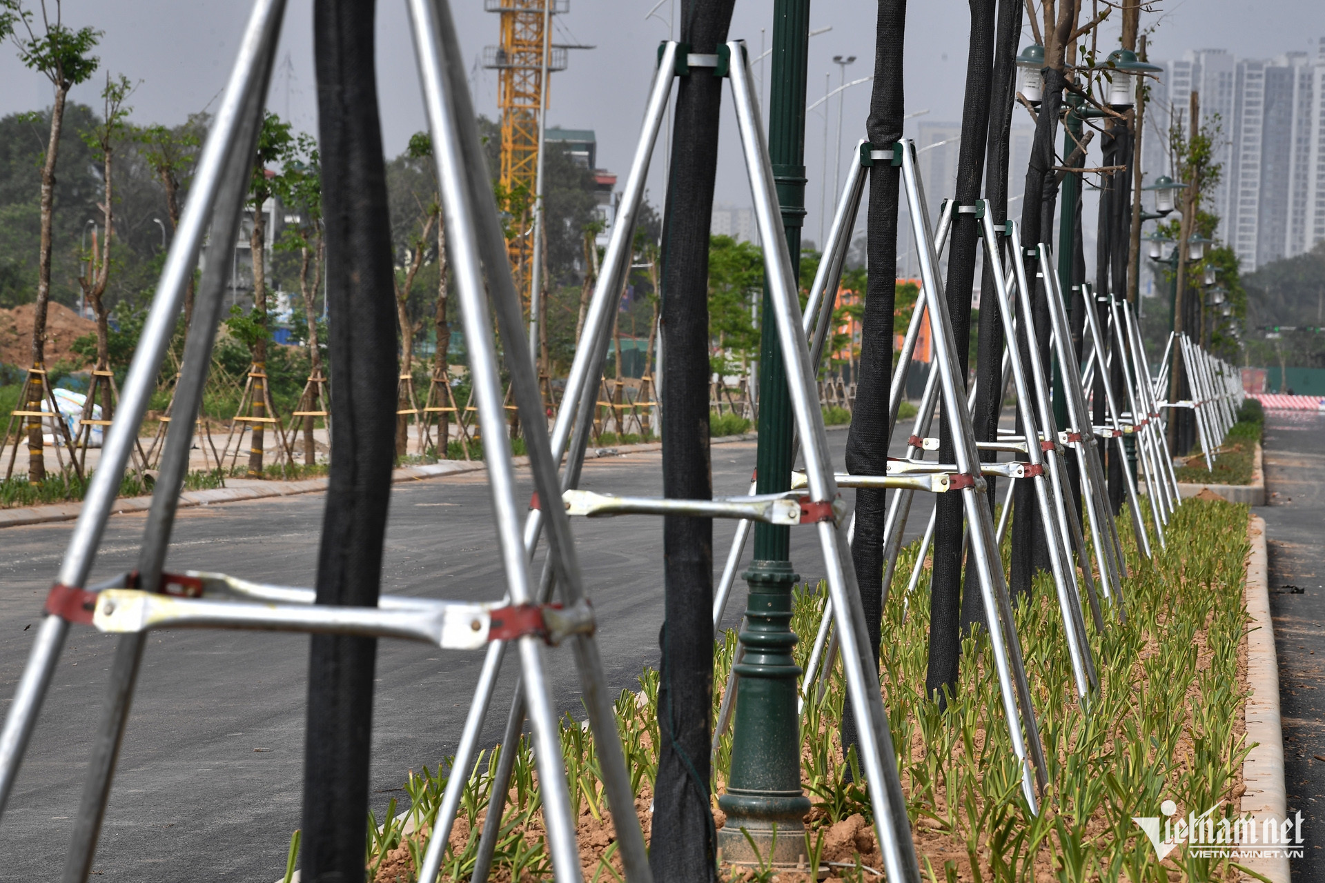 Hiện khu vực này gần như đã hoàn tất, chỉ còn công tác lắp đặt kết cấu bảo vệ cây xanh mới trồng.