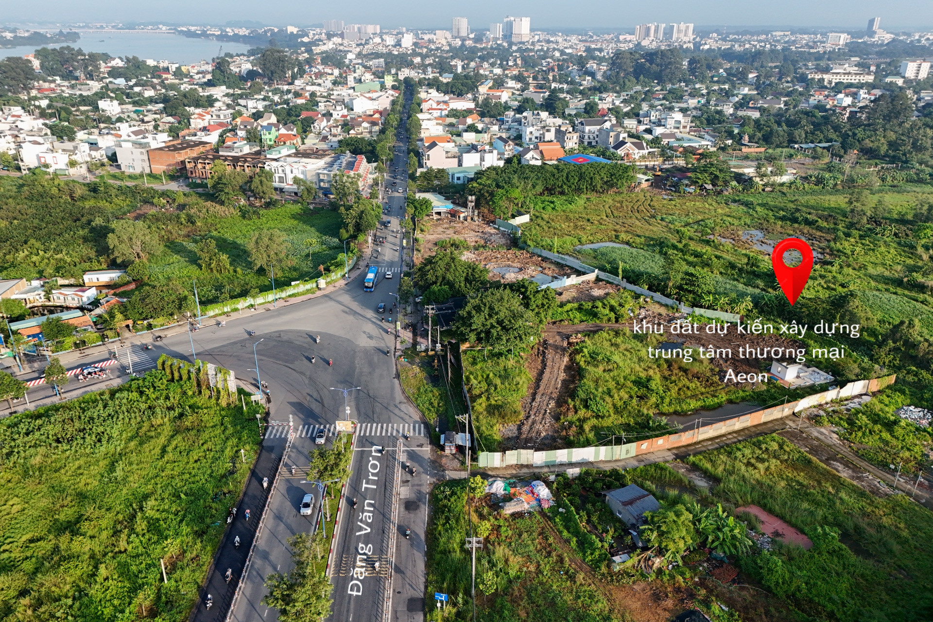 Khu đất rộng gần 12 ha mặt tiền là đường Đặng Văn Trơn được quy hoạch làm trung tâm thương mại Aeon Mall Biên Hòa tạo điểm nhấn về kiến trúc cảnh quan của khu vực.