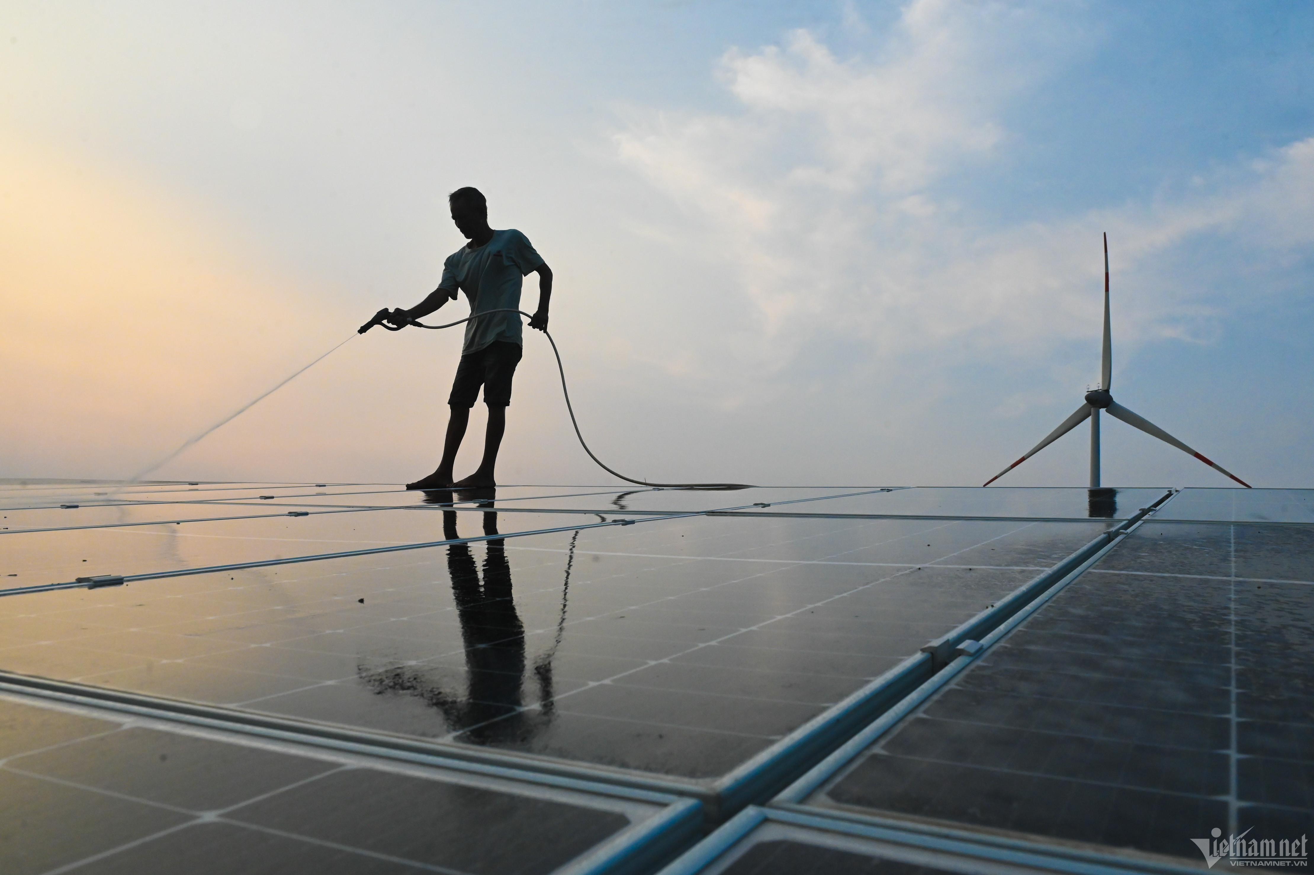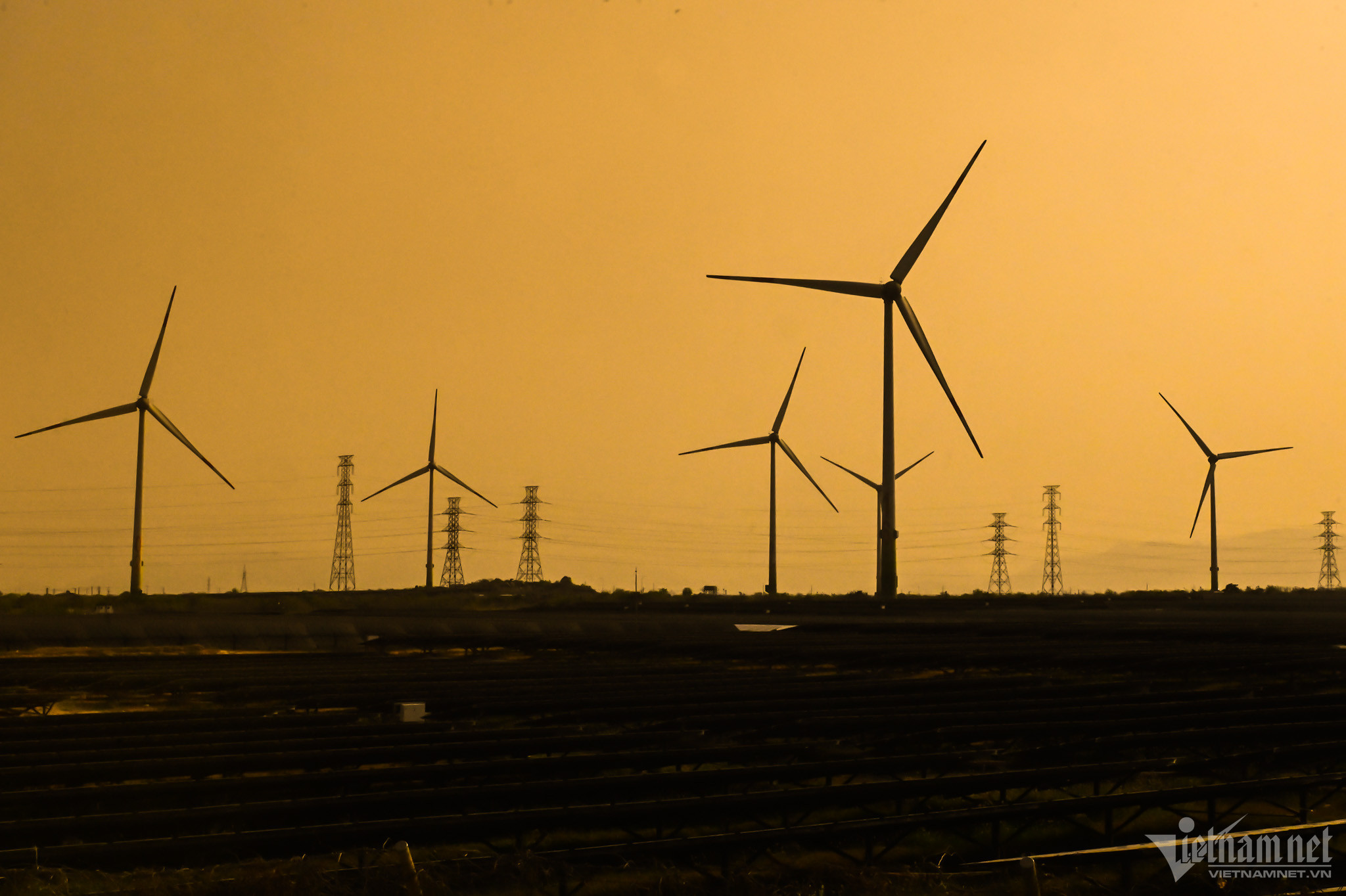 Trong ánh chiều tà nhuộm vàng óng cả đất trời, ông Mận phóng tầm mắt về phía cánh đồng điện gió, điện mặt trời, tấm tắc về sự thay đổi của kinh tế gia đình rồi những người trong thôn.