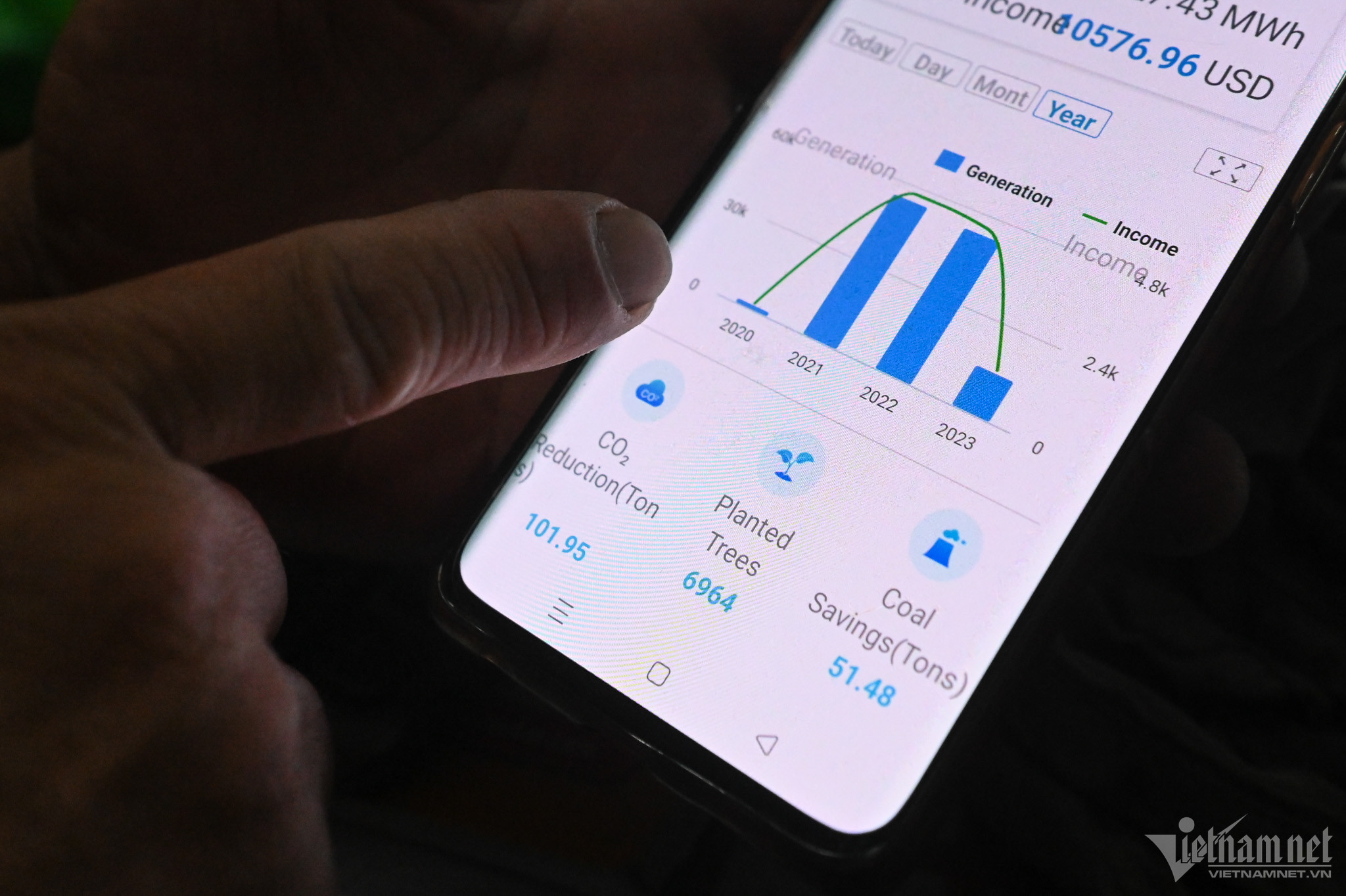 Gia đình ông Việt Hiến kinh doanh tạp hóa, nằm ngay trên trục đường quốc lộ 1A chạy ngang thành phố. Mỗi tháng, do phải dùng máy làm đá viên, tiền điện ông phải chi trả khoảng 17 triệu đồng. "Ngày đó tôi có hiểu gì về điện mặt trời đâu. Cái này do công ty lắp đặt họ đến tư vấn và được giải thích cặn kẽ lắm. Với một hộ kinh doanh như gia đình tôi thì lắp khoảng 50kW, điện dư thì bán lại cho nhà nước. Tất cả đều có app để theo dõi mỗi ngày. Những tấm pin còn được bảo hành vài năm. Hoặc còn có kiểu mua bảo hiểm cho pin nữa...", ông Hiến liệt kê một loạt những thông tin mình nắm được.