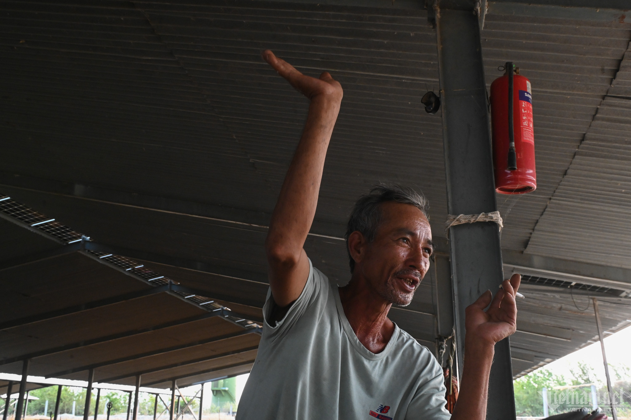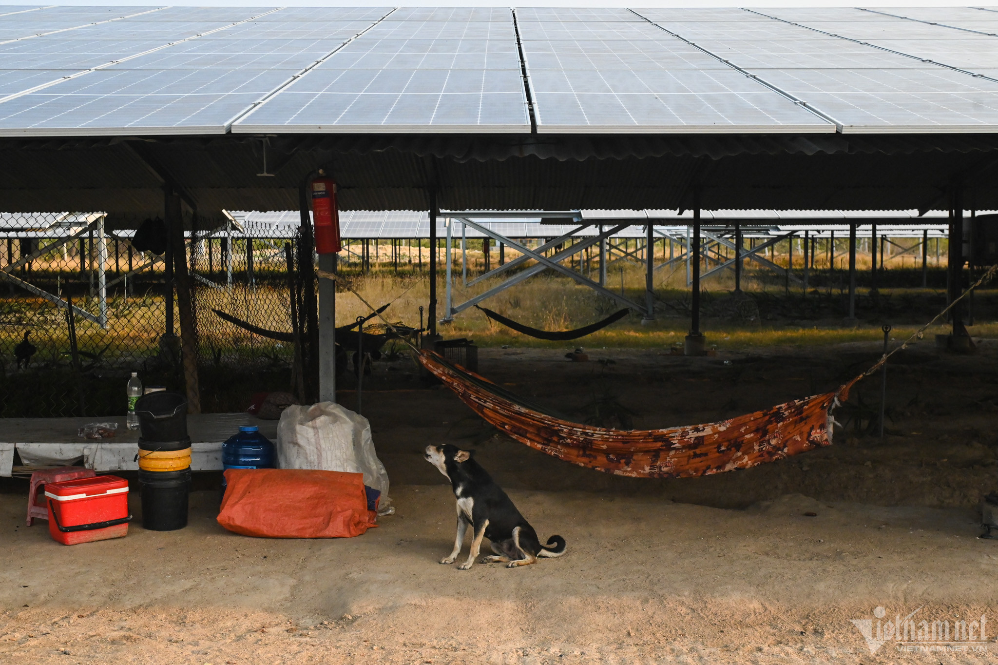 Từ ngày đảm nhận công việc bảo vệ, ông Mận chủ yếu sống luôn ở trang trại. Ban ngày vợ và con cháu ông cũng lui tới, đến tối về lại ngôi nhà trong làng. Lão nông cũng kiêm luôn công việc lau rửa những tấm pin mặt trời, mỗi tháng có thêm chừng 3 triệu đồng. "Mình ở đây họ tạo điều kiện lắm nên tôi cũng cẩn thận, đầu tư mua máy xịt rửa công suất lớn. Mỗi lần rửa pin thì làm từ sáng sớm tinh mơ lúc 2-5h hoặc chiều muộn 18h trở đi. Nói chung, khi nào không có mặt trời thì pin không hoạt động, lúc đó mình lau rửa được", ông Mận nói.