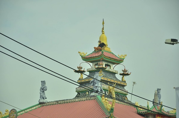 Thanh niên nghi ngáo đá 'quậy tưng' trên nóc chùa Sài Gòn suốt buổi sáng