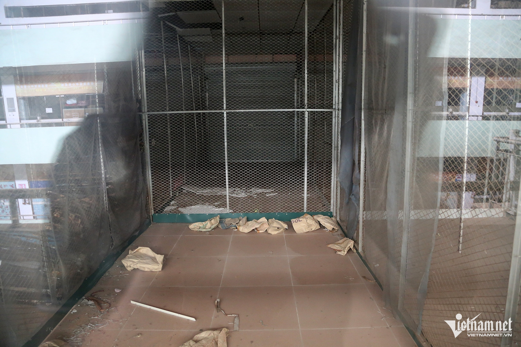 Bên trong trung tâm, bụi phủ dày lối đi, hàng loạt ki-ốt khóa cửa. Cơ sở vật chất trung tâm thương mại đã hư hỏng, hệ thống thang máy không hoạt động, cửa khung sắt hoen rỉ, khoảng sân bên trong thành bãi đỗ xe ô tô.
