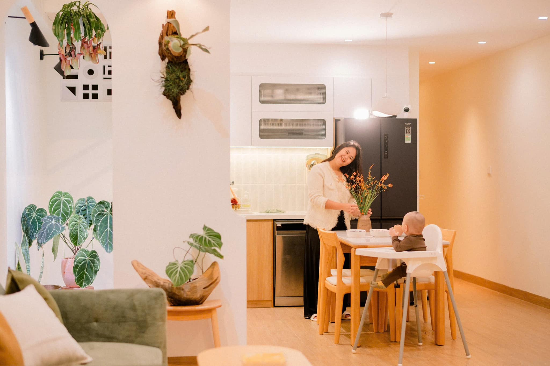 “Khi bước vào nhà, mọi người sẽ không thấy vật liệu sắt thép nhiều mà chỉ cảm nhận được một tông màu nhẹ nhàng, ấm áp của gỗ và màu sơn.