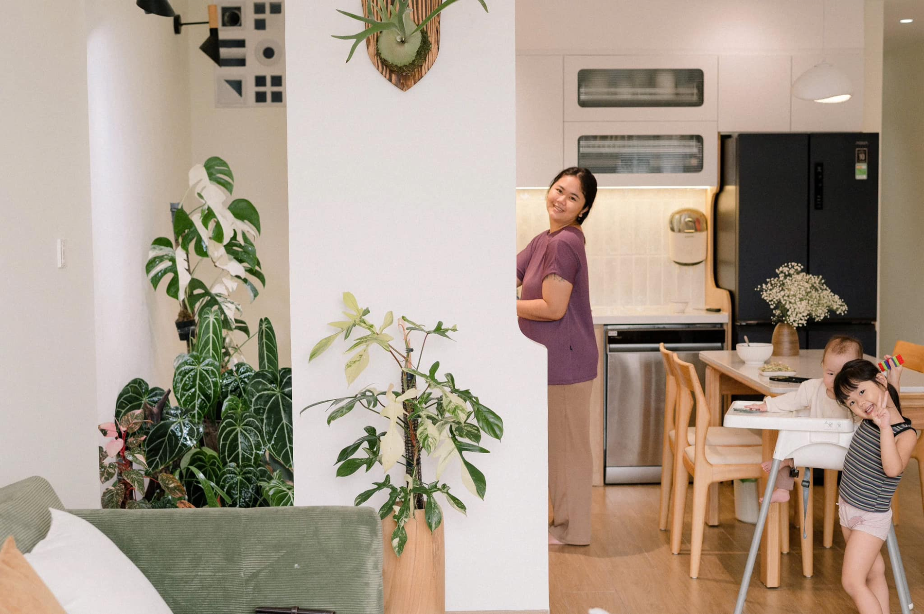 Vì sống xa bố mẹ 2 bên, lại có 2 con nhỏ nên vợ chồng chị Quỳnh lựa chọn đầu tư vào thiết bị gia dụng thông minh như máy rửa chén bát, robot hút bụi, máy giặt, máy sấy, máy pha cà phê… để có nhiều thời gian cho công việc và chăm sóc gia đình.