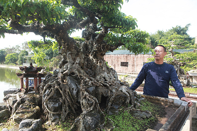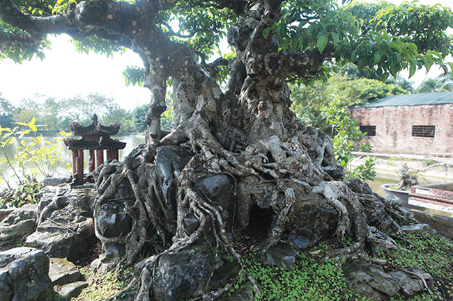 Những điểm chưa phù hợp như một số viên đá dài quá rễ chưa bám cụt vào bên trong được anh Tuấn làm triệt để, để cho tác phẩm hoàn thiện. Tay cành cũng được anh Tuấn cắt giật chứ không uốn nắn như các cụ xưa “tay cành chuyển giật, về nguyên lý nến không cắt thì cây nó cứ phóng ra, độ đuỗn của cây sẽ cao. Nhưng khi mình cắt giật thì độ to, độ đuỗn của tay, cành sẽ to đều với thân”, anh Tuấn chia sẻ