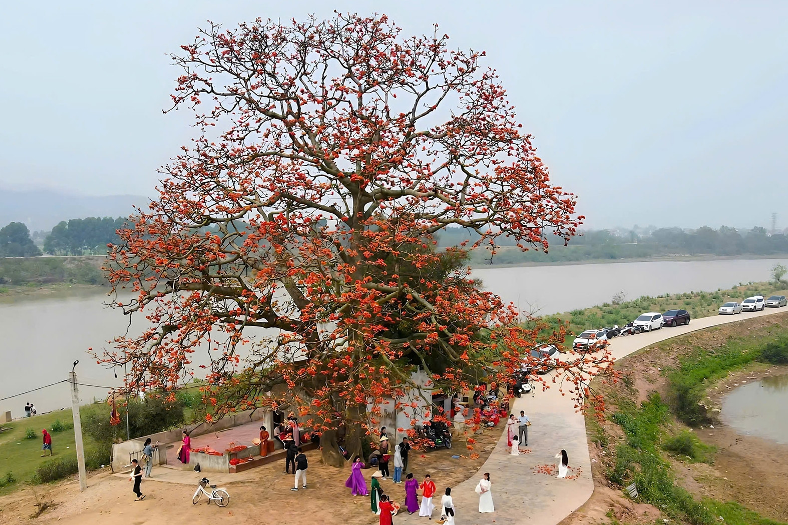 Đại diện Hitachi chia sẻ, cây này có chiều cao khoảng 25m, tán cây rộng gần 40m, chu vi thân cây gần 7m.