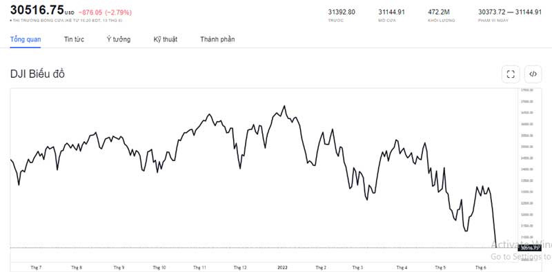 Kết thúc phiên giao dịch 13/6 (rạng sáng 14/6 giờ Việt Nam), chỉ số công nghiệp Dow Jones giảm thêm 900 điểm, trong khi chỉ số tầm rộng S&P 500 sụt gần 4%.