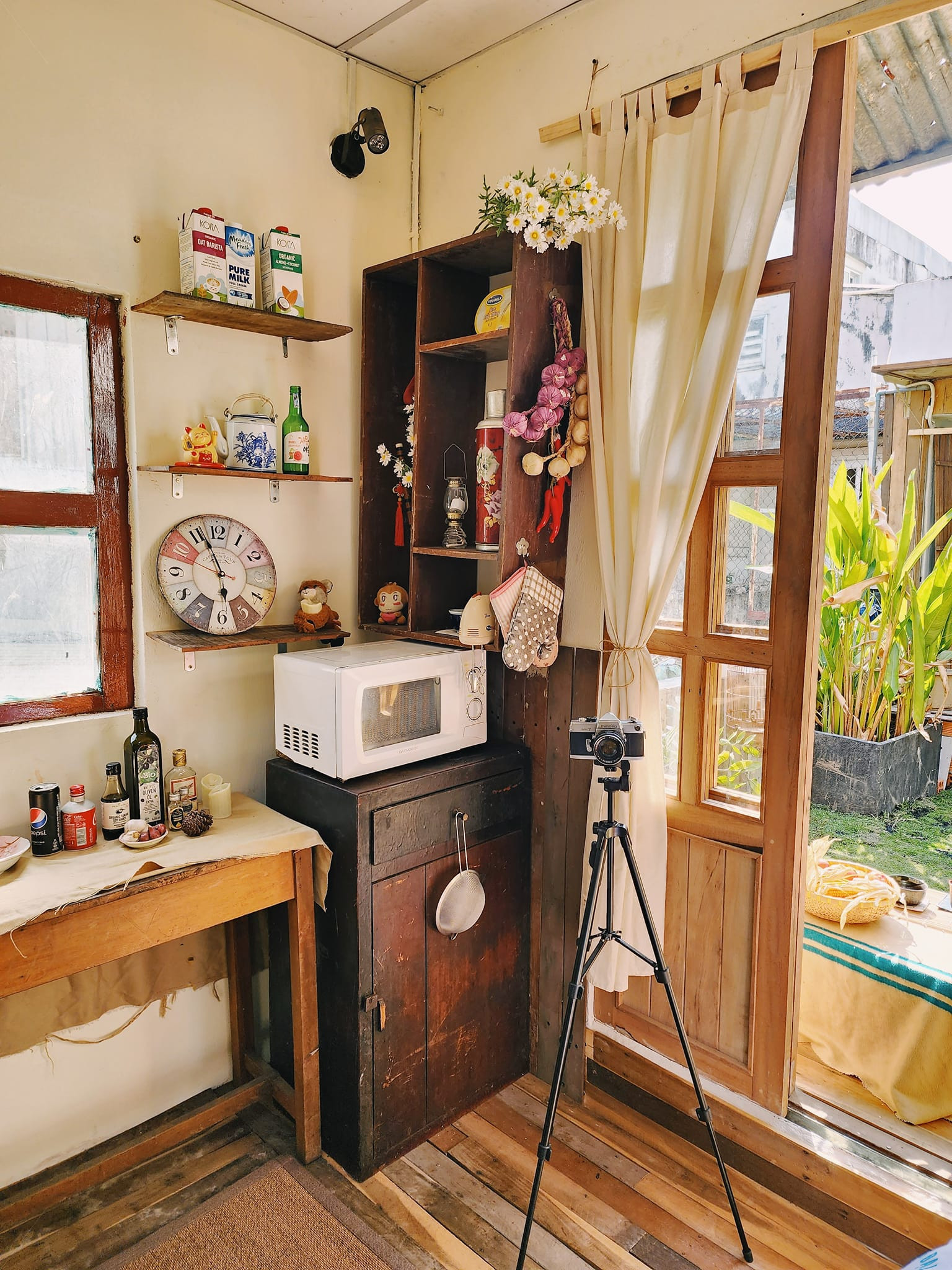 Ngoài để ở, anh Thức còn dùng phòng làm studio thu nhỏ, phục vụ cho sở thích chụp ảnh của mình.