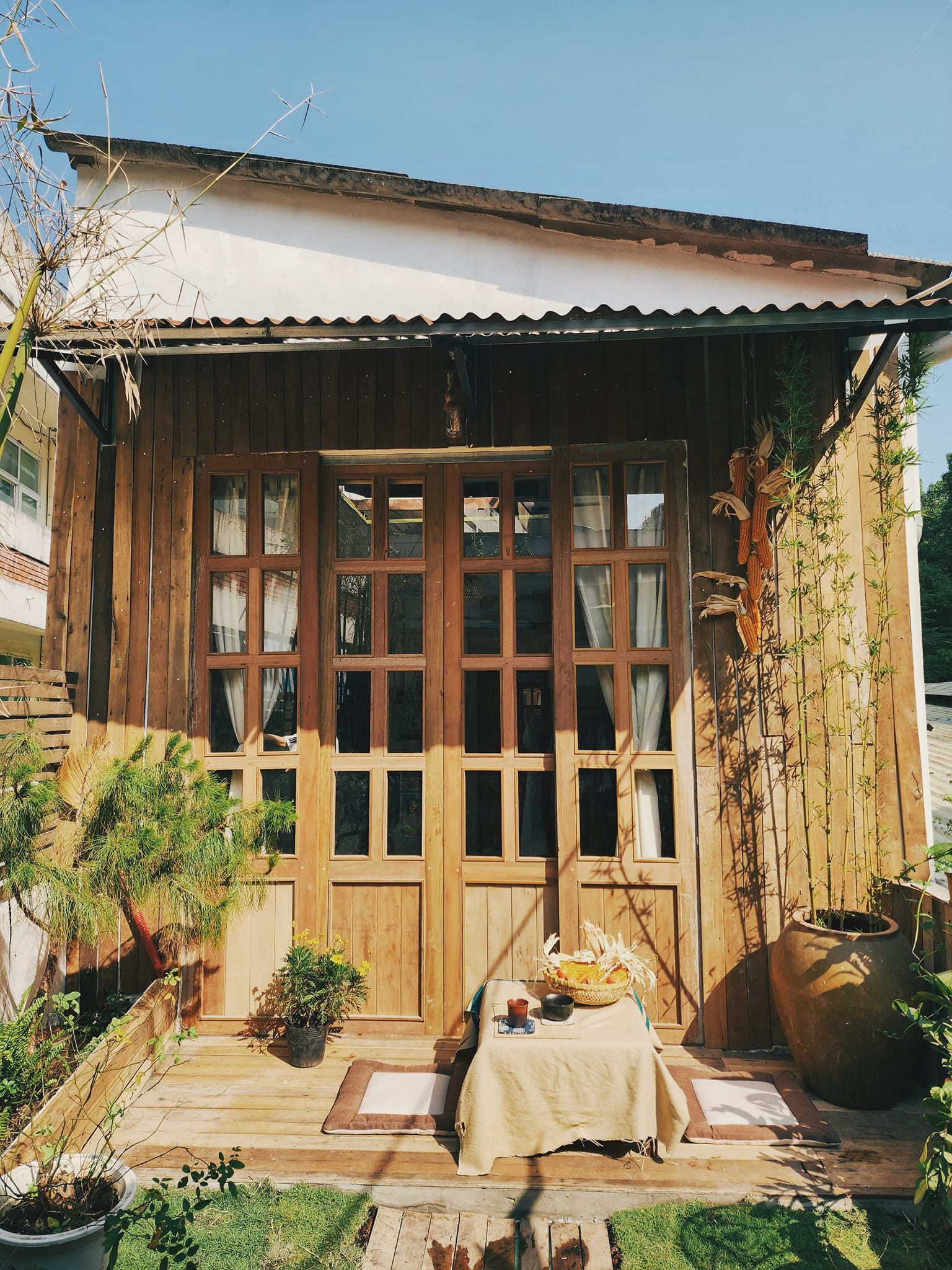 Mọi vật liệu decor anh tự săn ở tiệm đồ cũ hoặc mua trên các sàn thương mại điện tử. Anh tự lên ý tưởng thiết kế với tone chủ đạo là màu nâu gỗ. Khó khăn nhất có lẽ là về kết cấu, vì thiết kế sân thượng anh thuê đã cũ nên phải cho phá dỡ hết rồi xây lại, kế đến là phải tìm loại gỗ cũ thích hợp với ý tưởng mình muốn.