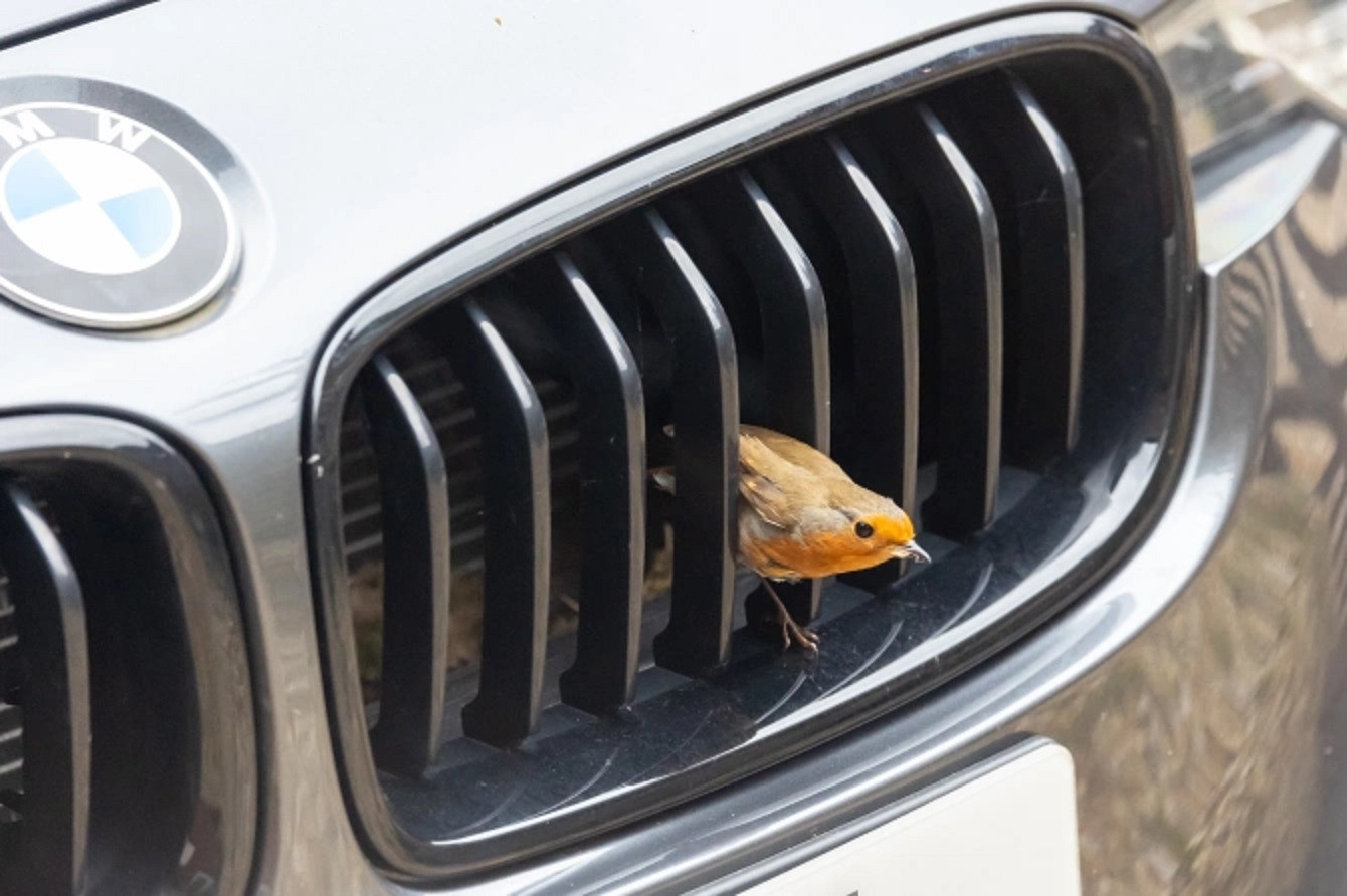 Jan Brown – một chủ xe BMW ở Anh đã không hề phát hiện ra những “hành khách” mới trên chiếc xe của mình. Mãi đến chủ nhật vừa qua, Jan Brown mới nhìn thấy tổ của chim cổ đỏ và ba quả trứng chưa kịp nở nằm bên trong lưới tản nhiệt của chiếc xe.