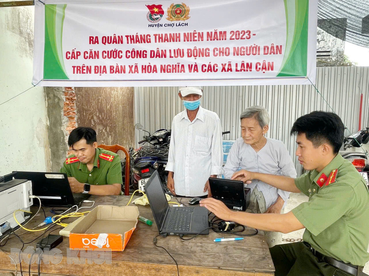 Công an huyện Chợ Lách cấp căn cước công dân lưu động cho người dân trên địa bàn xã Hòa Nghĩa và các xã lân cận. Ảnh: Ngọc Nga