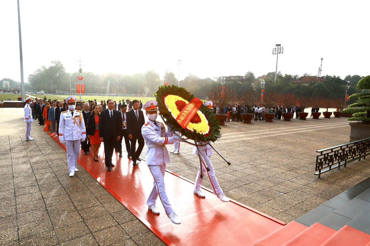 Kết thúc nghi lễ, Chủ tịch nước và phu nhân cùng đoàn kiều bào rời Hoàng Thành Thăng Long về Phủ Chủ tịch để chụp ảnh lưu niệm.