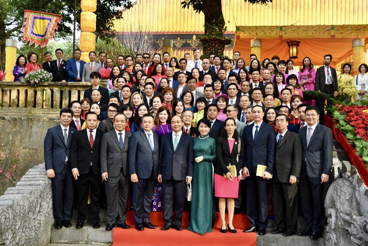 Chủ tịch nước Nguyễn Xuân Phúc và phu nhân, cùng đại diện lãnh đạo bộ, ban, ngành Trung ương, thành phố Hà Nội, đại biểu kiều bào đã tới Điện Kính Thiên tiến hành các nghi lễ thành kính tưởng nhớ và dâng hương tới các thế hệ cha ông đã đổ máu xương gìn giữ, bảo vệ non sông nước Việt; báo cáo với các bậc tiền nhân sự trở về đất mẹ của bà con kiều bào người Việt Nam trên khắp thế giới.