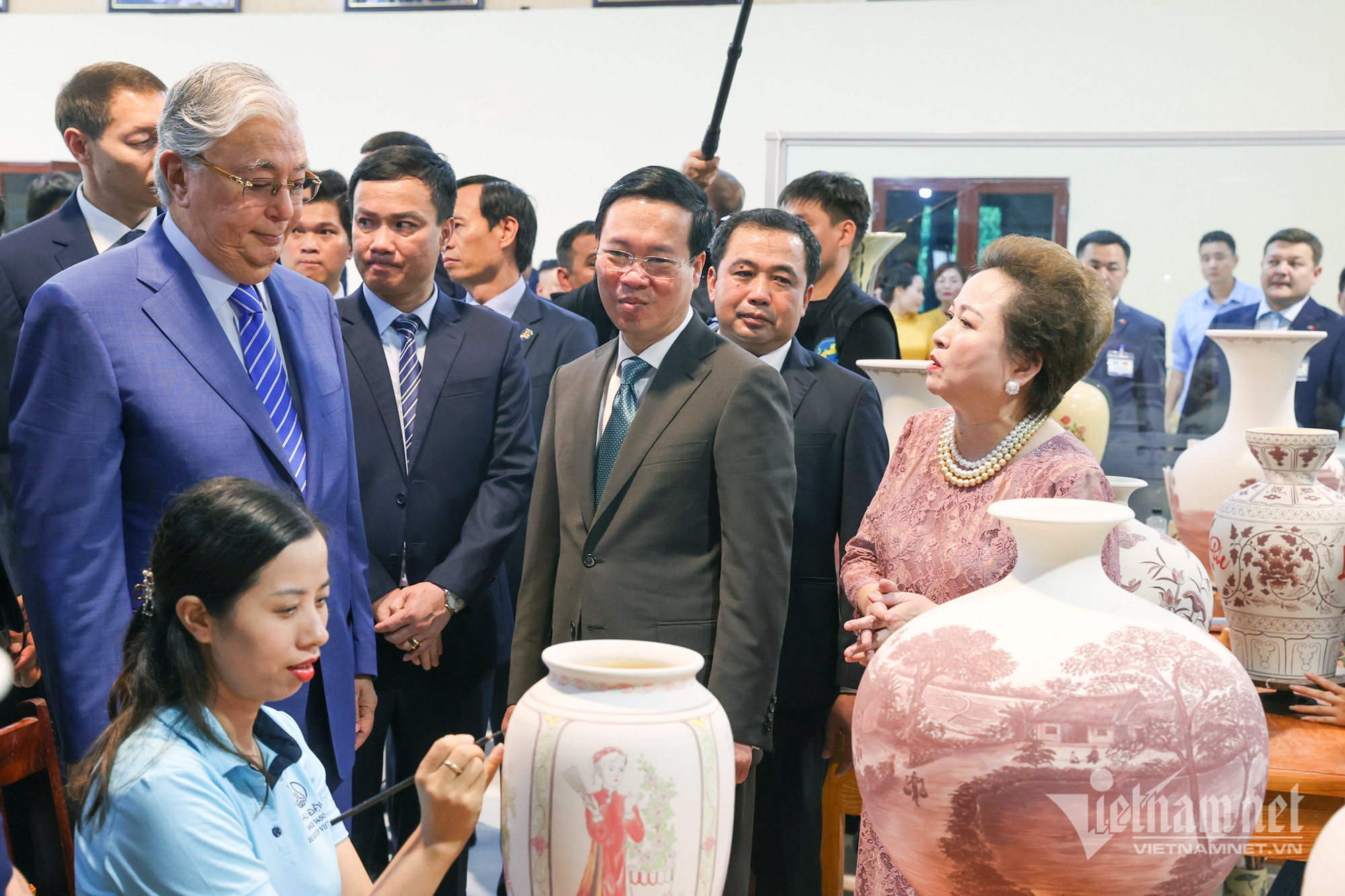 Trò chuyện với các nghệ nhân, Chủ tịch nước Võ Văn Thưởng và Tổng thống Kassym-Jomart Tokayev mong muốn địa phương tiếp tục gìn giữ và phát huy tài sản quý giá này, thường xuyên thay đổi mẫu mã, đầu tư, ứng dụng nhiều hơn nữa khoa học công nghệ vào sản xuất và chú trọng quảng bá đến thị trường trong và ngoài nước.
