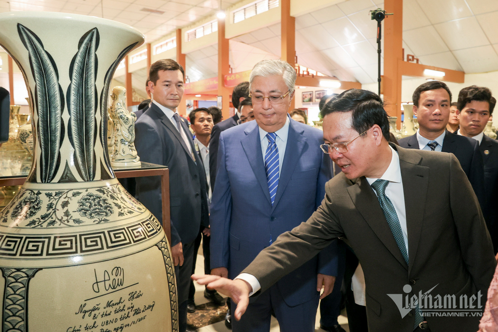 Sáng 22/8, giữa lịch trình dày đặc trong chuyến thăm chính thức Việt Nam, Chủ tịch nước Võ Văn Thưởng cùng Tổng thống Kazakhstan Kassym-Jomart Tokayev đã đến thăm Làng Gốm Chu Đậu tại xã Thái Tân, huyện Nam Sách, tỉnh Hải Dương.