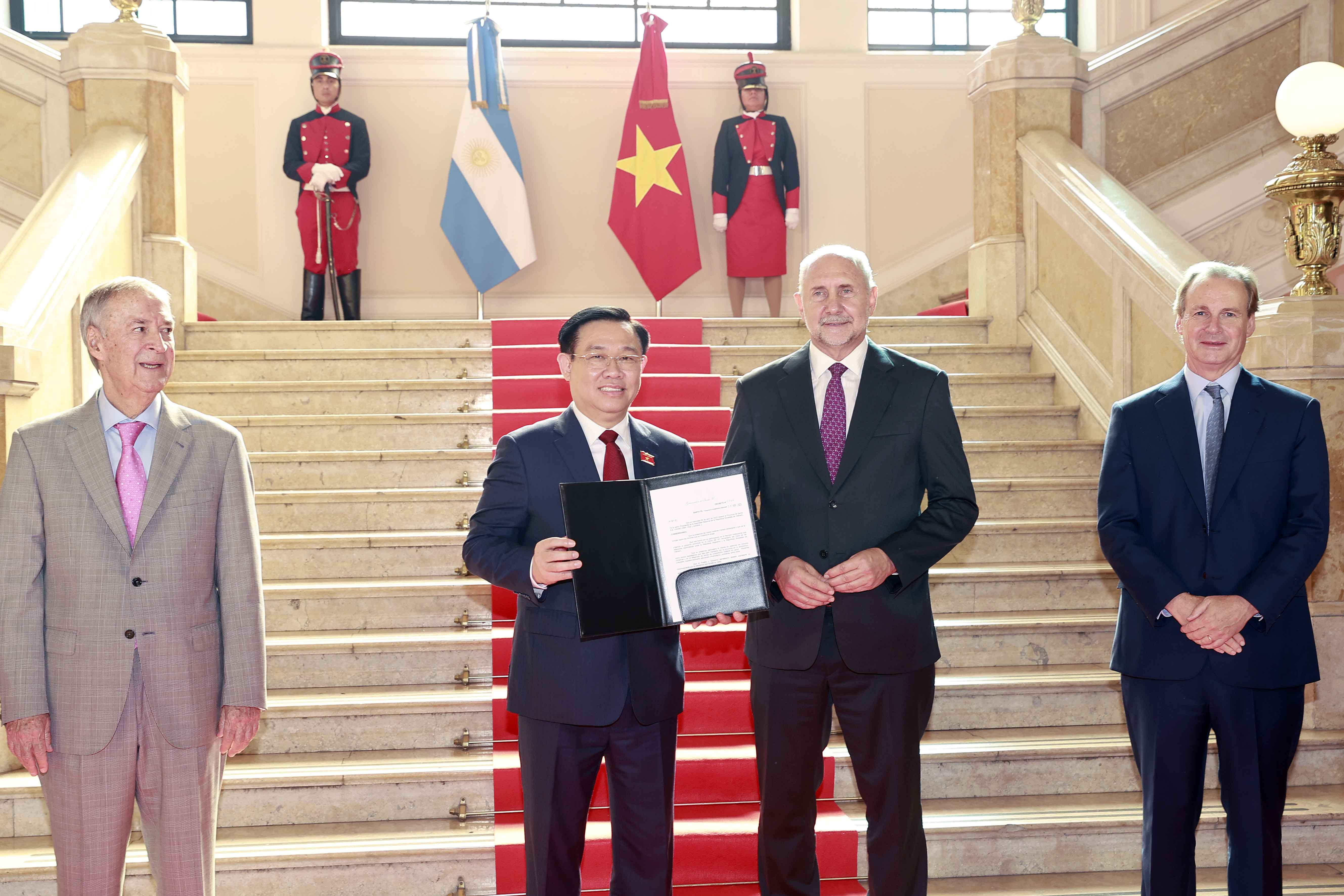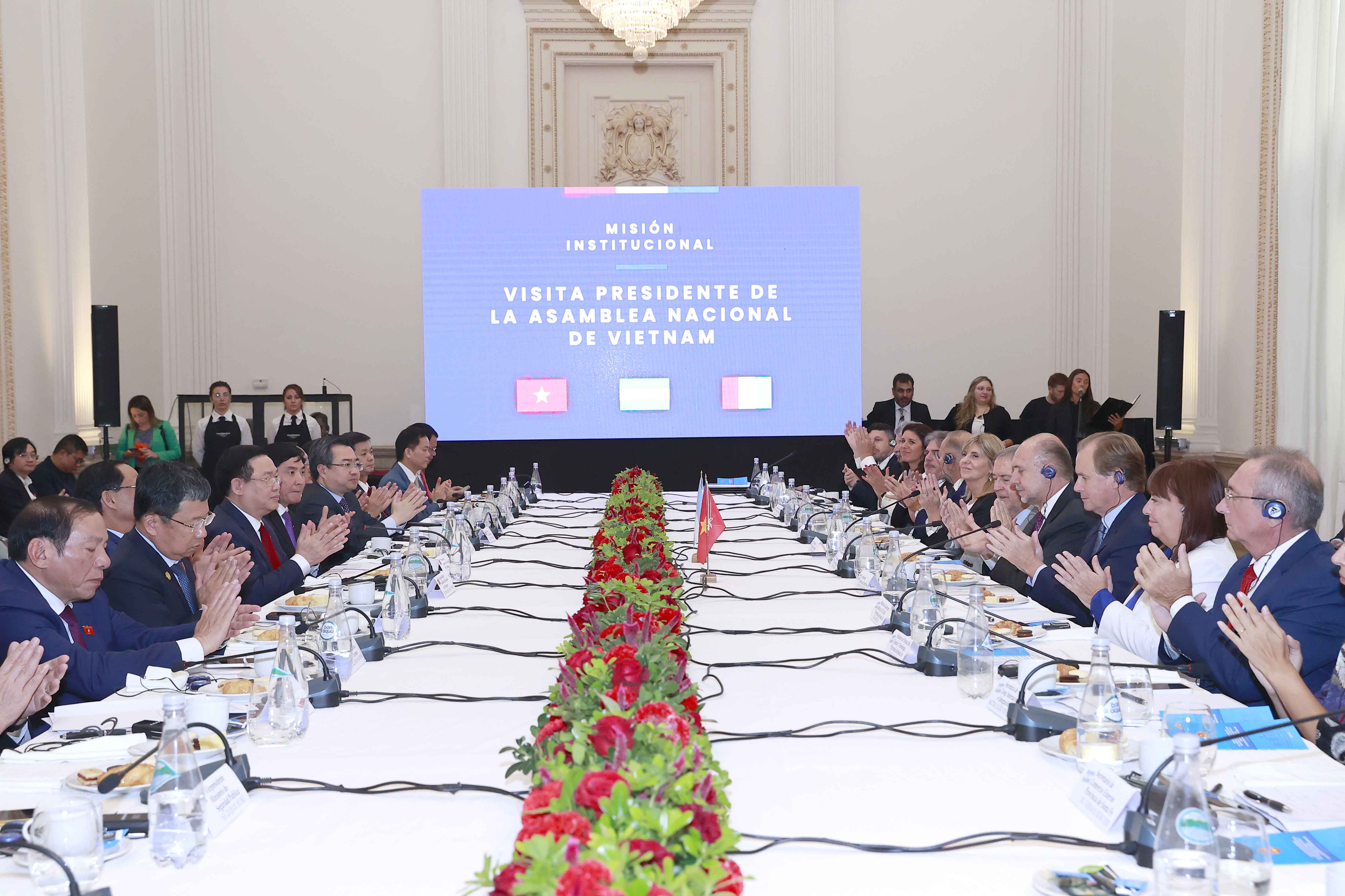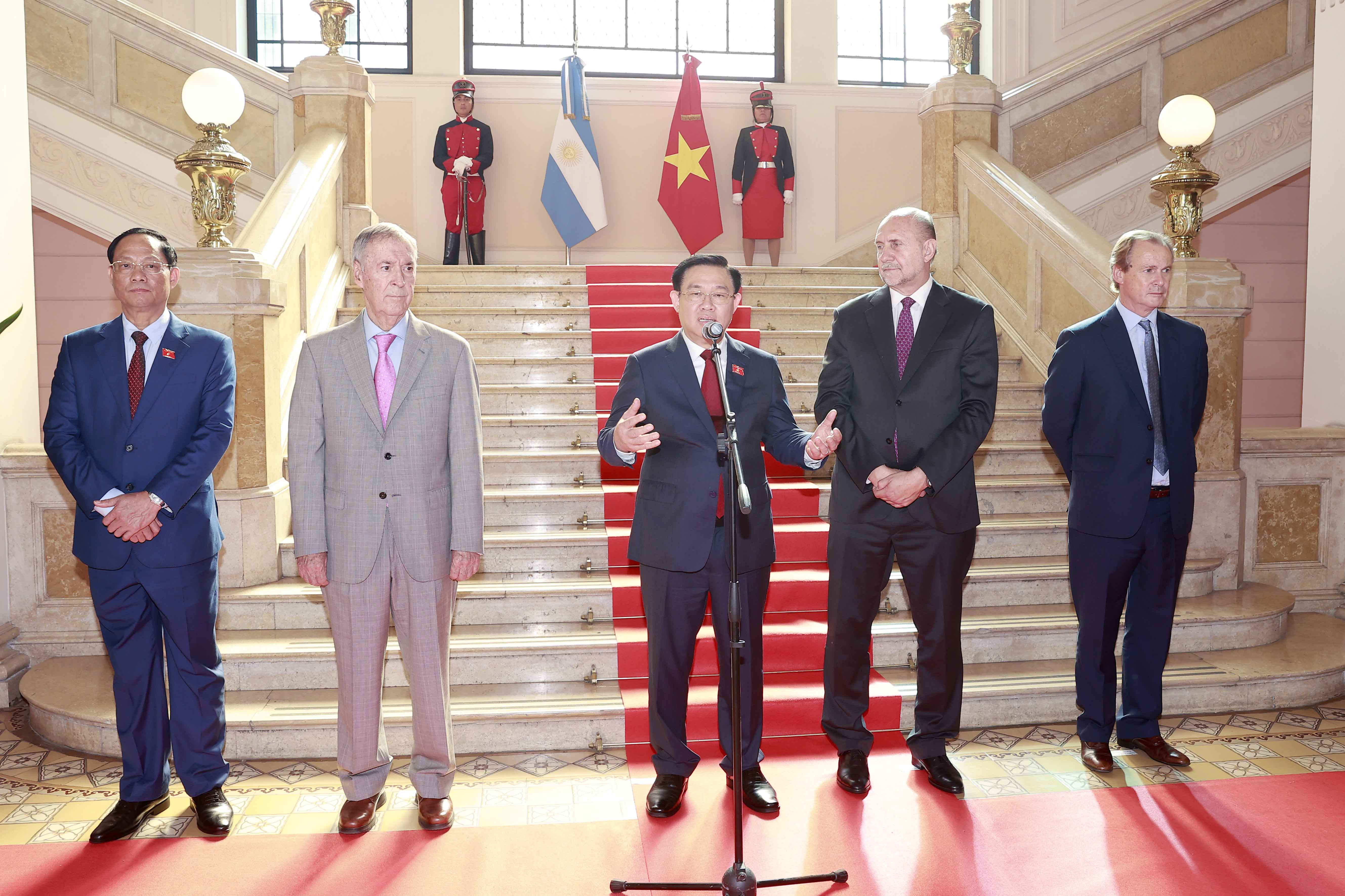 Chủ tịch Quốc hội Vương Đình Huệ nêu rõ, Việt Nam - Argentina đang hướng đến quan hệ Đối tác chiến lược trong một số lĩnh vực như nông nghiệp công nghệ cao, năng lượng... Mục tiêu của hai nước phấn đấu tăng kim ngạch thương mại song phương lên 10 tỷ USD vào năm 2025, gấp đôi so với hiện nay.