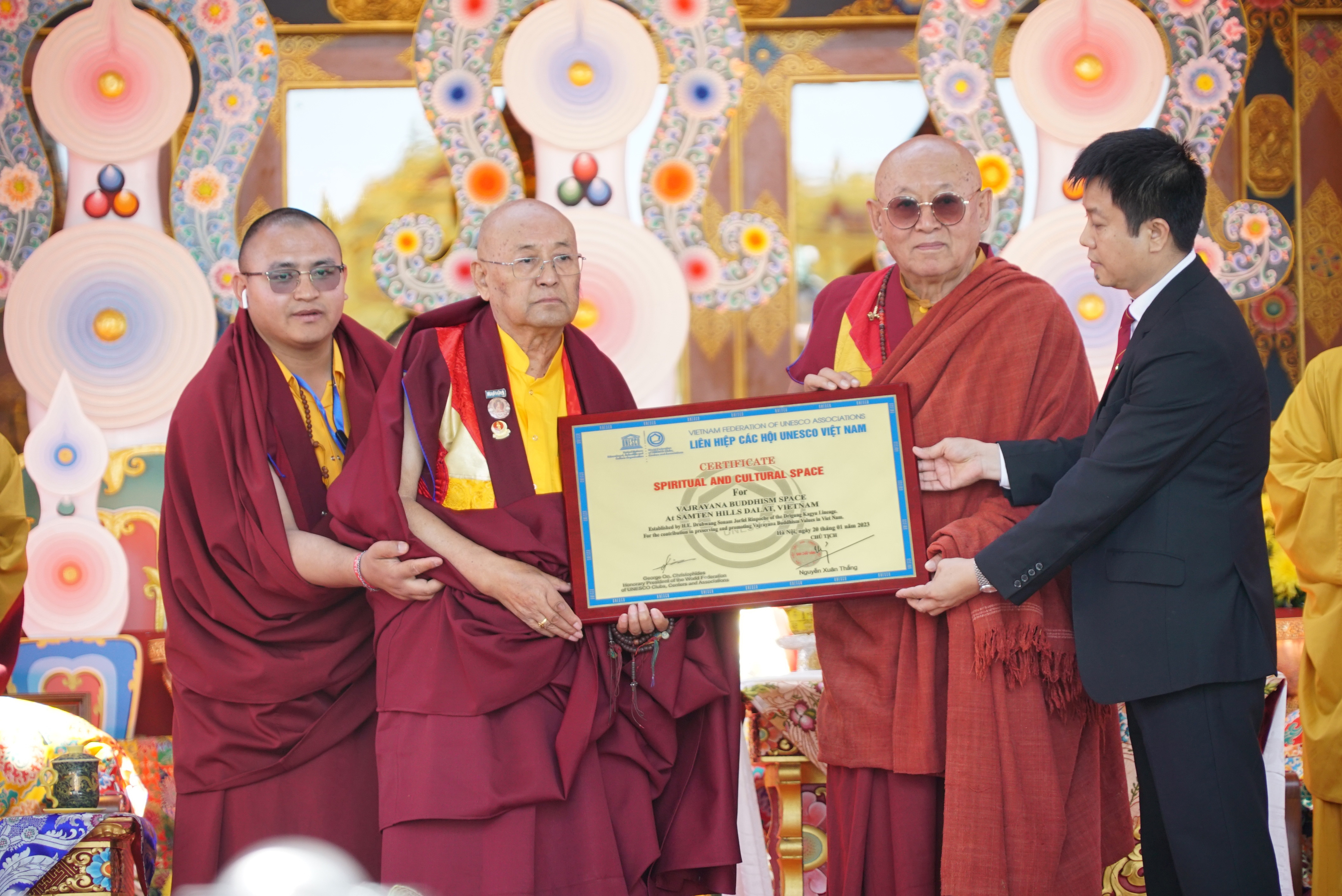 Ngày 7/3/2022, tại Samten Hills Dalat (xã Tu Tra, huyện Đơn Dương, Lâm Đồng), Liên hiệp các Hội UNESCO Việt Nam chính thức trao tặng "Chứng nhận Không gian văn hóa tâm linh" dành cho Không gian Phật giáo Kim cương thừa bên trong Khu tham quan du lịch văn hóa tâm linh Samten Hills Dalat.