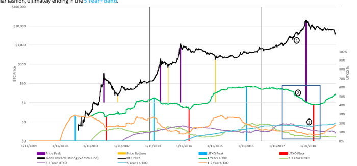 Các UTXO trên 1 năm hiện tại không có sự biến động nhiều. UTXO dưới 1 năm đã chạm sàn trong nửa đầu năm 2018, khi những người nắm giữ bán hết lượng Bitcoin của mình. Hiện tại, Bitcoin đang đi vào quá trình tích lũy tương tự vào cuối năm 2014 và điều này là điều tốt cho Bitcoin.