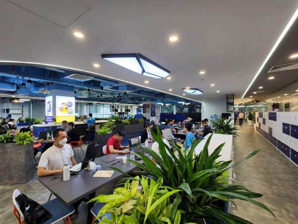 Văn phòng tạo điều kiện tốt nhất cho các bộ phận và nhân viên kết nối, cộng tác dễ dàng, thích ứng với mô hình làm việc trong trạng thái bình thường mới. Trung tâm của văn phòng là khu vực sảnh chính - nơi diễn ra các hoạt động gắn kết, thúc đẩy sáng tạo của CMC TS.
