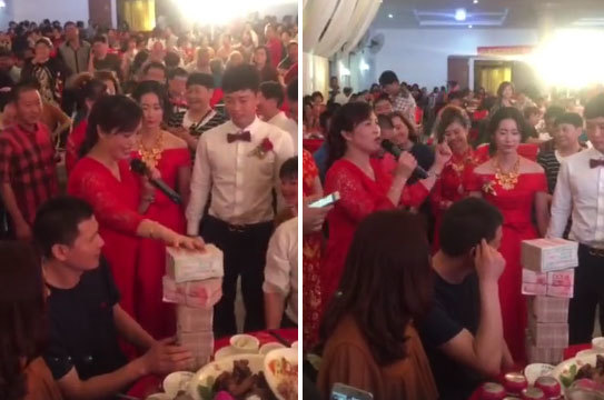 Đoạn video ghi lại cảnh những cục tiền mừng to khủng được trao cho cô dâu và chú rể ở một đám cưới ở Trung Quốc hiện khiến dân mạng bàn tán xôn xao.