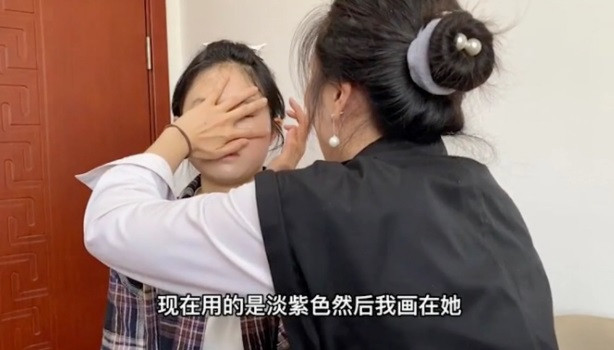 Khi không thể nhìn thấy gì, Xiao đã học cách trang điểm bằng cách sử dụng cảm nhận bằng bàn tay.
