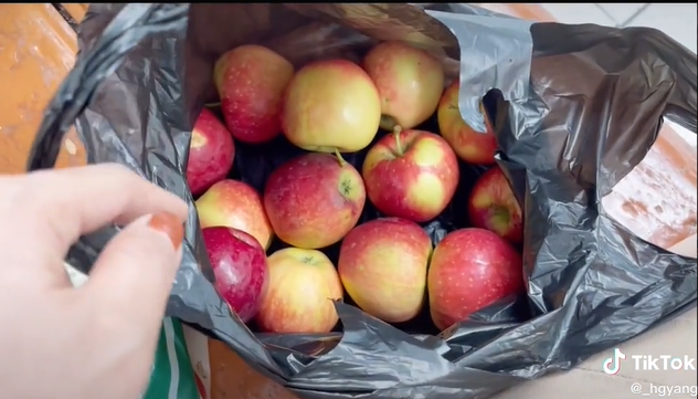 2 cân táo cô gái mua được ở Hàn Quốc. Nguồn TikTok @heevu