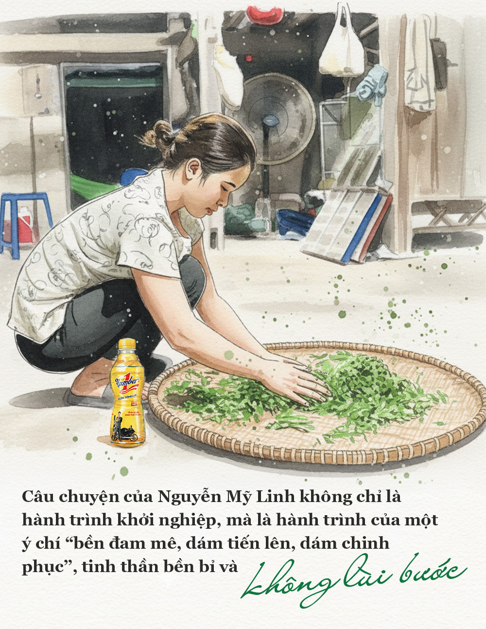 Có những đêm Linh mệt như muốn gục xuống. Đầu óc cô quay cuồng giữa nguyên liệu, thu hái, kỹ thuật sấy trà và cả những nỗi sợ về khoản nợ. Khoảnh khắc đó, Linh vươn tay, không phải tìm điện thoại, mà lấy chai Number 1 mát lạnh đặt bên bàn. Những khi mệt mỏi, chai nước này luôn là người bạn đồng hành quen thuộc, tiếp năng lượng và sự tỉnh táo cho cô. Với Linh, đó không chỉ là một thức uống, mà là lời nhắc nhở chỉ cần tin vào bản thân, cô sẽ luôn đủ mạnh mẽ để vượt qua thử thách và đi tiếp trên hành trình của mình.