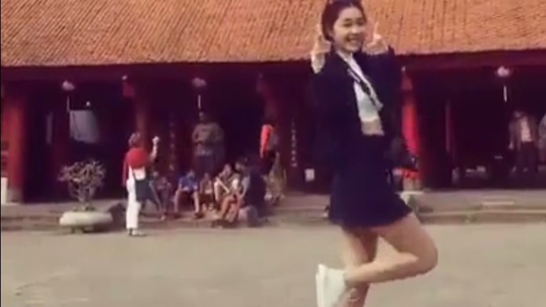 Hành động hồn nhiên của cô gái trẻ hut sự chú ý của dân mạng.