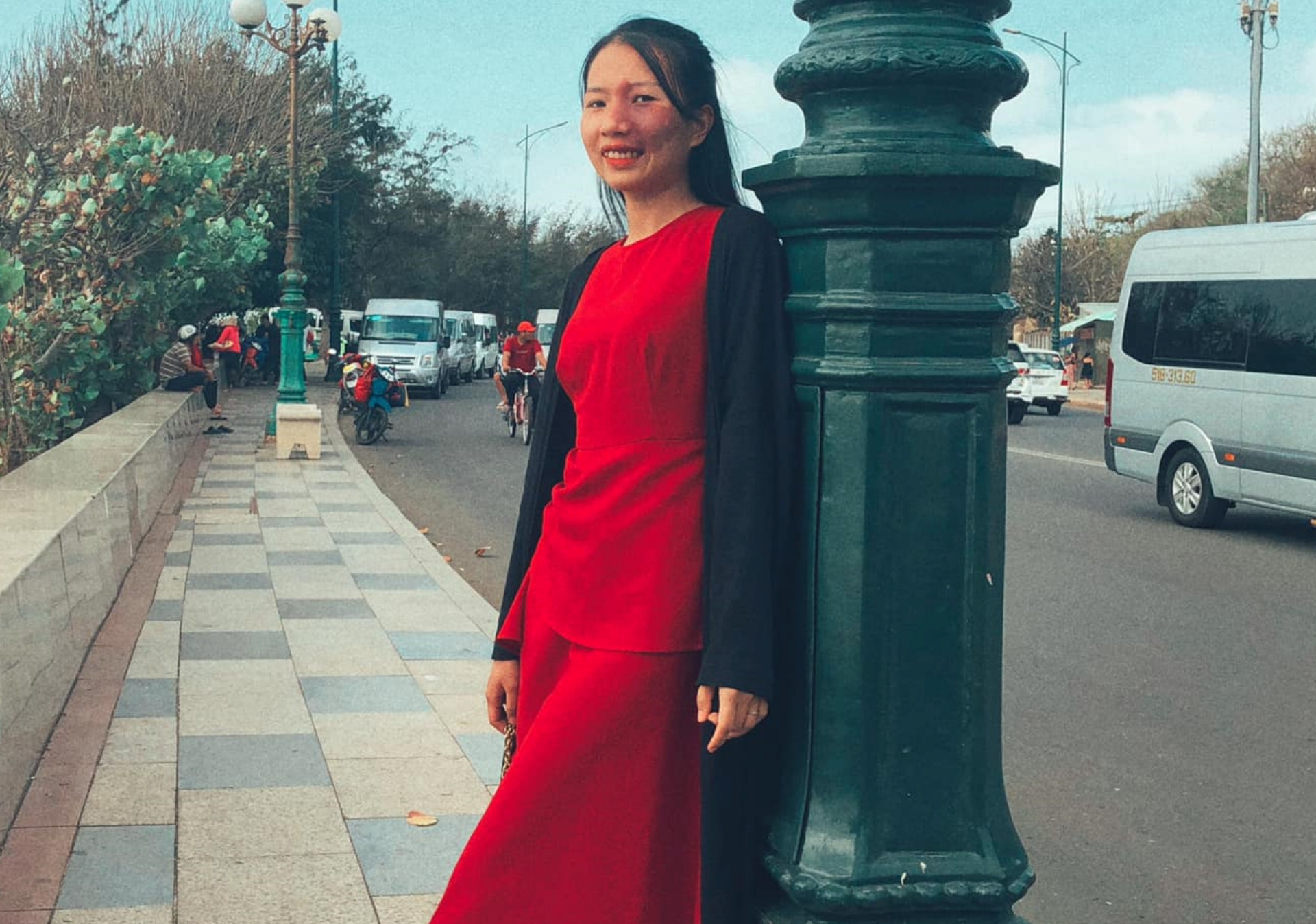 Diện trang phục trẻ trung, tô thêm son môi, Lý Hồ Bích Ngân (29 tuổi, tỉnh Đồng Nai) tự tin dạo phố cùng bạn bè. Sự tự tin, duyên dáng xóa nhòa mọi ánh nhìn tò mò đang xoáy vào vết bớt trên mặt trái của Ngân.